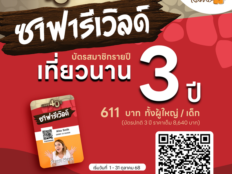 แคมเปญที่ SafariWorld จัดร่วมกับ Clay Works ขอแบ่งปันให้เพื่อนที่มีลูกหลานที่สนใจ โปรดีสำหรับนักเรียนและผู้ปกครอง ปกติบัตรรายวันคนละ 800.- โปรนี้คือ…. เข้า ได้ทั้ง 2 parks ได้ 3 ปี ถึง 31 ต.ค. 71 เพียง 611 บาท